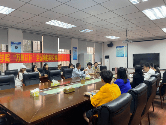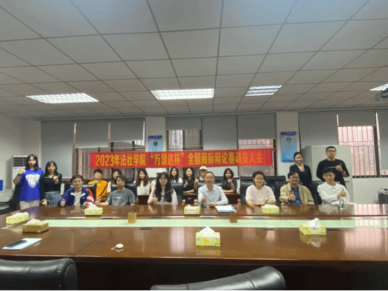 知识产权系主任龚红兵老师、杨婧老师、胡庆乐老师以及商标辩论赛的全体参赛队员在莞城校区5201会议室召开了2023年91热爆